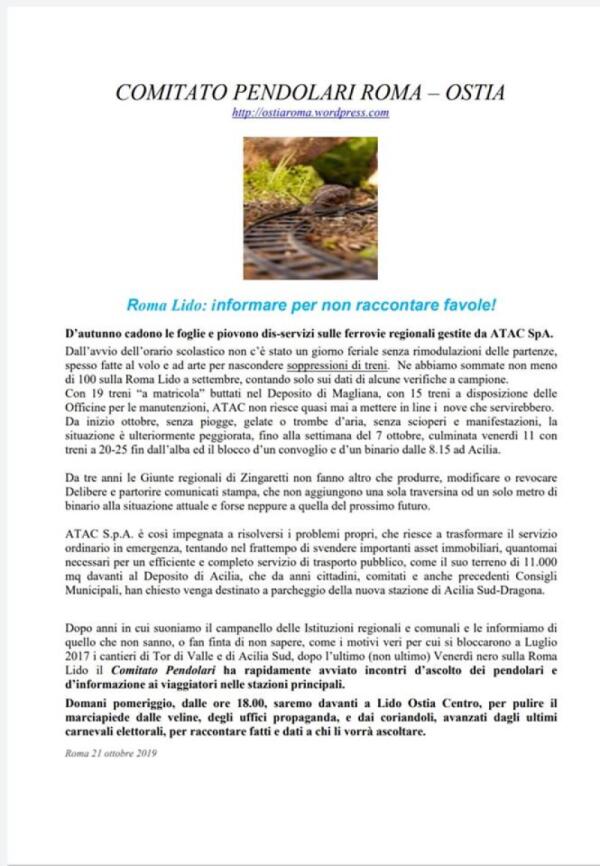 Comitato Pendolari Roma-Lido: informare per non raccontare favole!