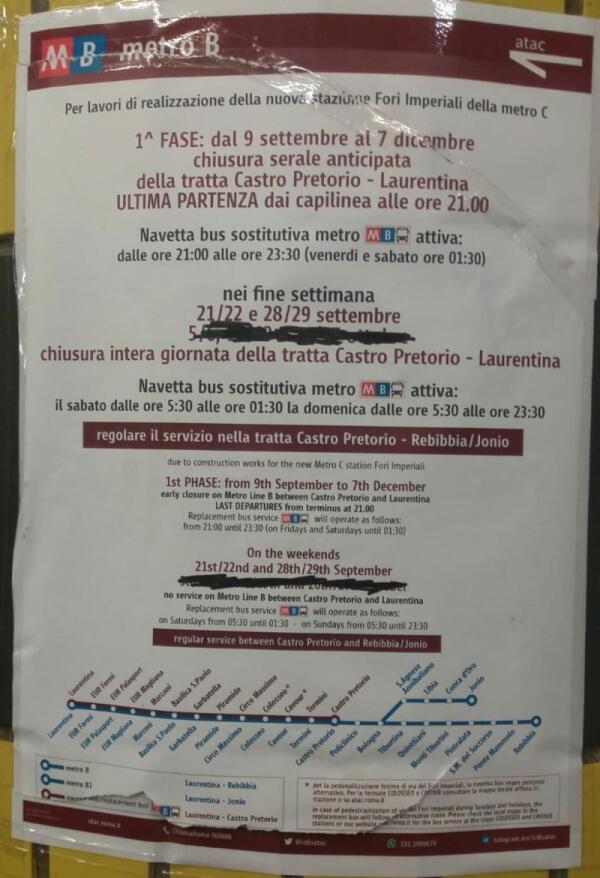La Metro B non dovrebbe chiudere nei prossimi week end