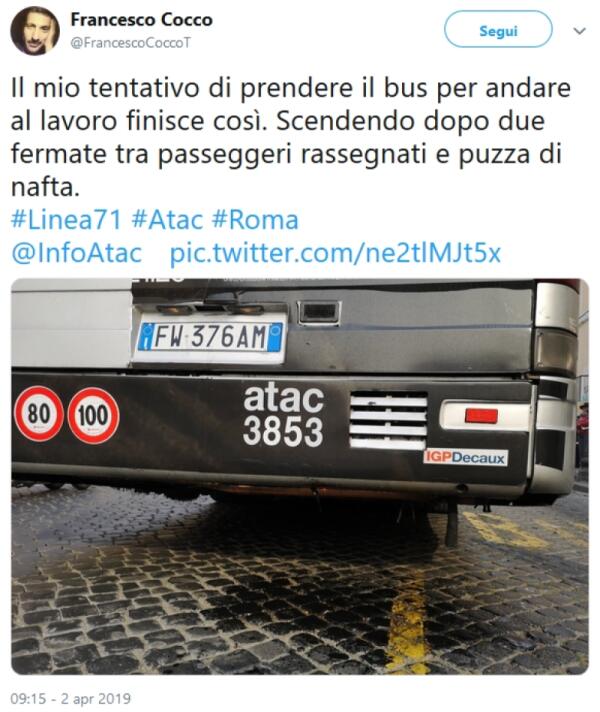Situazione Trasporto Pubblico Roma mercoledì 10 aprile
