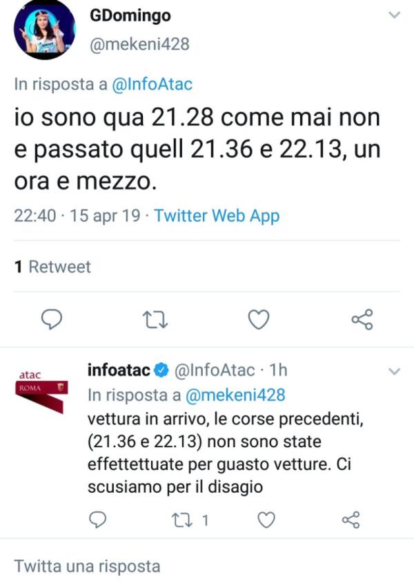 Situazione Trasporto Pubblico Roma martedì 16 aprile