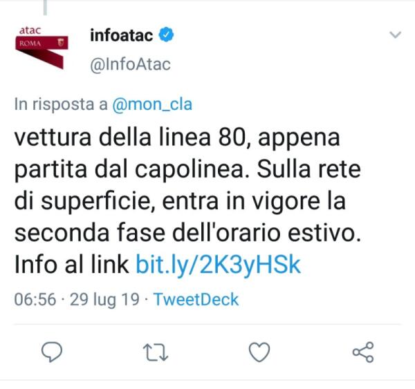Situazione del trasporto pubblico di Roma: Lunedi 29 luglio
